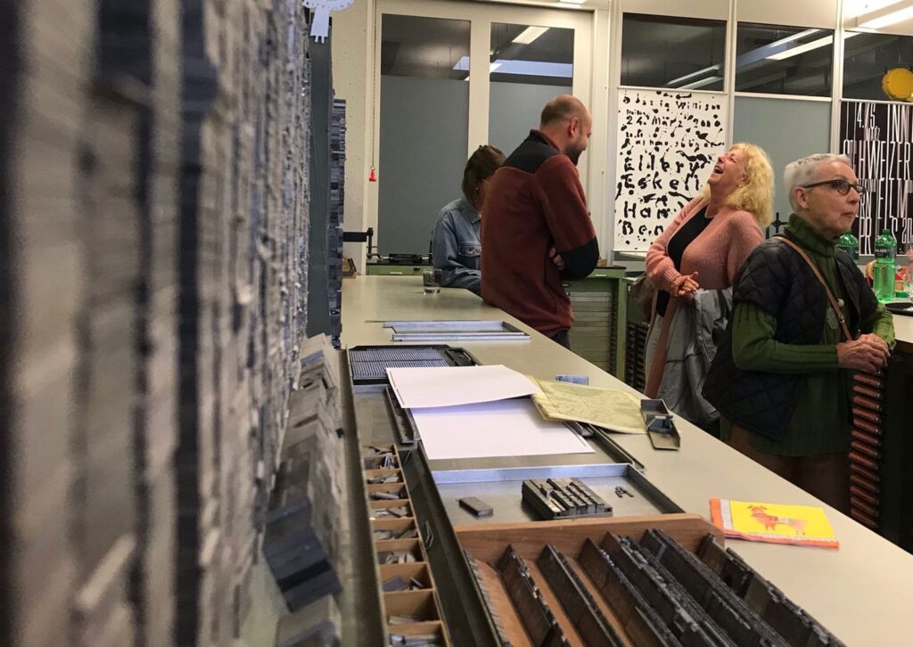 Seit fünf Jahren träumen wir von einer Lesung zwischen den Druckmaschinen in der Werkstatt von Weiss- und Schwarzkunst. Im Hansheiri-Zweifel-Stübli durften wir unterdessen schon einige Denkmaltage und Matinéevorträge abhalten, neben den vielen Generalversammlungen, nota bene.