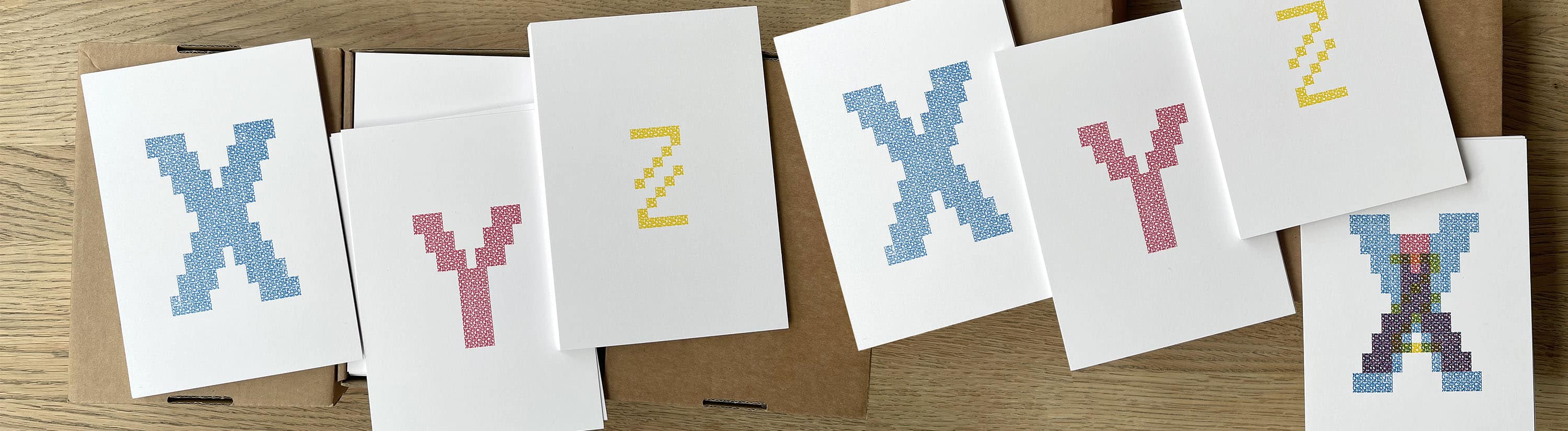 Karten von Hans Peter Dubacher, Grafiker (Luzern) mit typografischen Elementen.